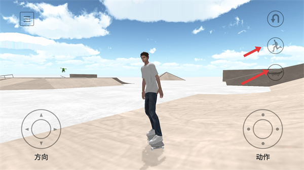 3、根據場景需求切換跑步或滑板模式靈活運用右側的動作按鈕,在不同地形中選擇合適的移動方式推進游戲進程。