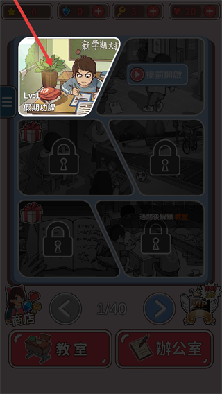 1、選擇新學期大掃除關卡,開啟校園找茬冒險,后續關卡需解鎖后可體驗。