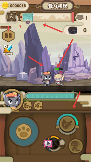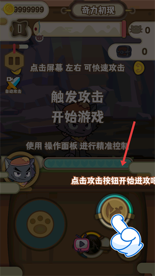 1、點擊攻擊按鈕開始進攻也可點擊屏幕左右快速攻擊,通過攻擊開啟游戲逐步推進關卡。