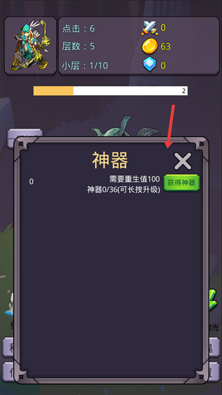 4、在神器界面當重生值達到100時可獲得神器神器可長按升級,提升角色屬性增強戰斗能力助力挑戰更高難度。
