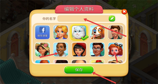 2、在編輯個人資料頁輸入名字后選喜歡的角色形象,確認后點保存就能定制專屬游戲身份。