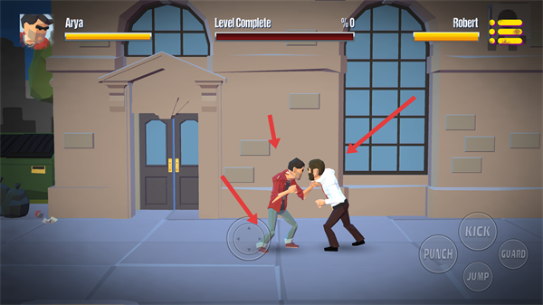 1、戰斗開始時利用左側搖桿控制角色移動與敵人近身格斗,同時觀察雙方血量尋找攻擊時機逐步消耗敵人血量。