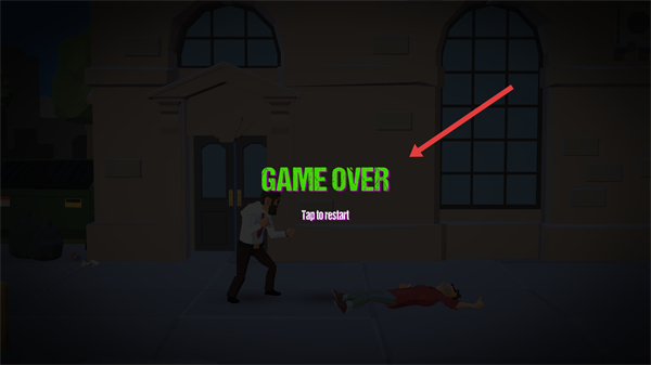 4、若戰斗失敗出現GAMEOVER點擊屏幕重新開始游戲,總結之前的戰斗經驗調整攻擊和躲避策略爭取下次勝利。