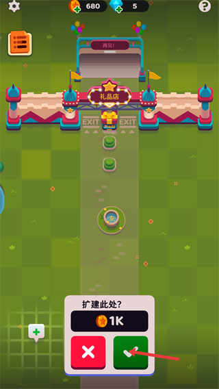 2、花費1K金幣確認擴建此處,擴大游樂場面積,提升整體布局的可操作性。