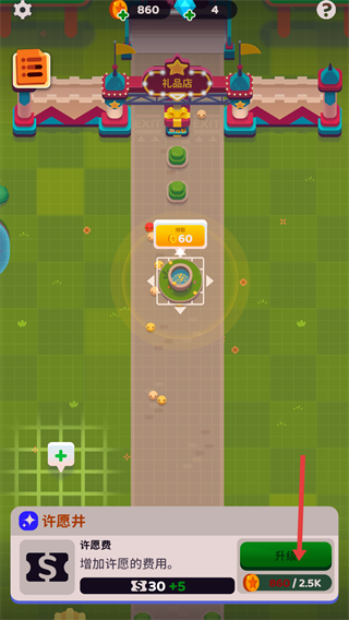 4、花費2K金幣升級許愿井,增加許愿費用,提升其金幣收益效率,助力游樂場資金積累。