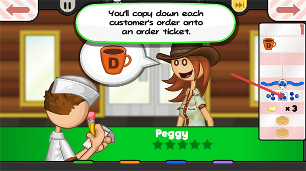 2、點擊TAKEORDER按鈕,接收顧客Peggy的訂單,開始記錄餐品需求,等待制作。