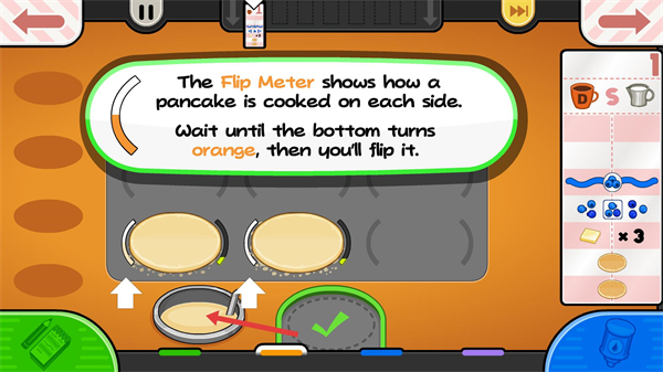 1、在PapasPancakeria的訂單站OrderStation,點擊右下角火焰標識區域,開啟接單流程。