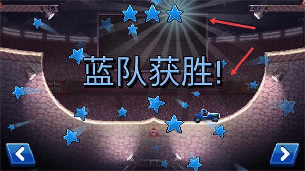 4、擊敗對手后藍隊獲勝可獲得大量星星獎勵,積累獎勵用于解鎖新車輛或提升車輛性能推進游戲進度。
