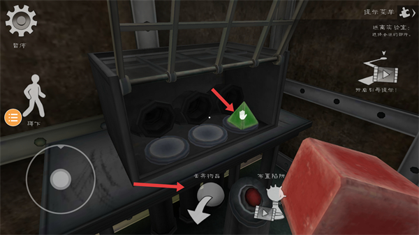 4、選擇合適的部件時點擊綠色三角形部件進行操作,可丟棄不需要的物品根據任務提示選擇合適的部件助力逃離實驗室。