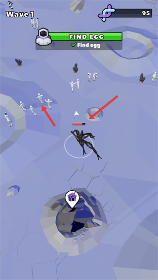 3、敵人攻擊性增強需注意躲避持槍敵人的攻擊,利用移動優勢周旋同時尋找機會吞噬敵人提升自身實力。