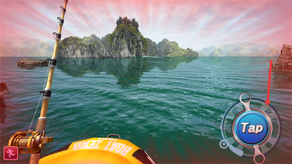 2、拋竿后當出現Tap按鈕時點擊它進行操作,這是釣魚的關鍵步驟需及時點擊以觸發后續的釣魚過程。
