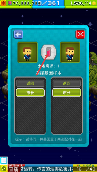 4、選擇基因樣本如市長基因,滿足土地需求,進行基因配對,為城市發展培育特殊人才。