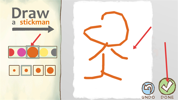 2、繪制好火柴人后點擊DONE確認若繪制不滿意可點擊UNDO撤銷,確認后即可進入下一步推進游戲進程。