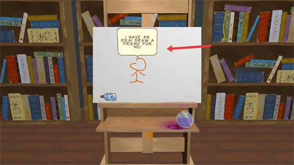 4、根據提示為火柴人繪制朋友按照要求在畫布上創作,完成后可讓火柴人擁有伙伴一起開啟游戲中的冒險之旅。