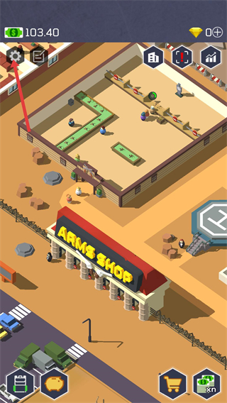 1、點擊左上角設置圖標可打開功能菜單,通過該入口能調整游戲參數,優化ARMSSHOP的經營操作體驗。