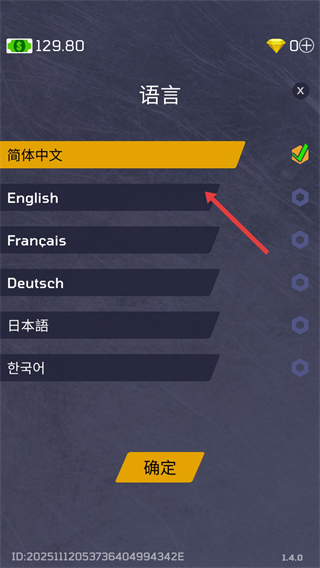 3、若需切換語言,在語言列表里選擇English,點擊確定即可完成切換,適配不同的語言環境。
