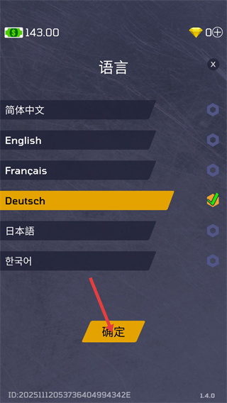 4、在語言選擇界面選定Deutsch后,點擊確定按鈕完成語言設置,適配個人的操作語言偏好。