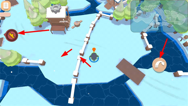 2、操控企鵝在場景的路徑上移動,借助跳躍功能跨越障礙,朝著目標區域前進,推進關卡的進程。