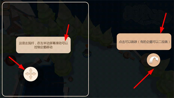 1、滑動左半邊屏幕的左搖桿控制企鵝移動,點擊屏幕讓企鵝跳躍,部分企鵝還能二段跳,熟悉操作來操控角色。