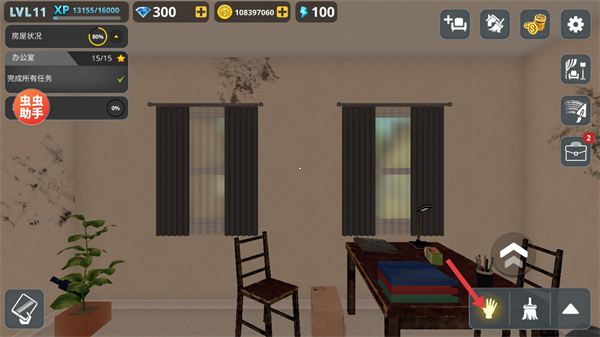 1、點擊界面中的手形按鈕,可交互場景內的物品如文件、文具,將其歸位以推進辦公室整理進度。