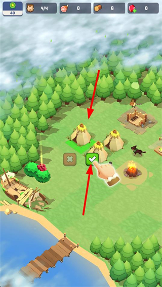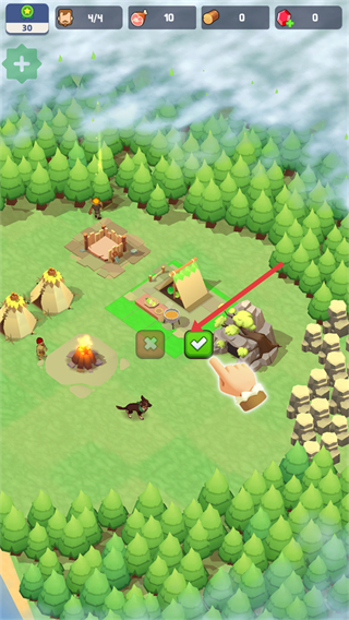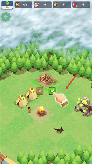 3、選好帳篷的放置位置后,點擊界面中的對勾按鈕,確認帳篷的建造位置,完成帳篷的布置,提升營地的容納能力。