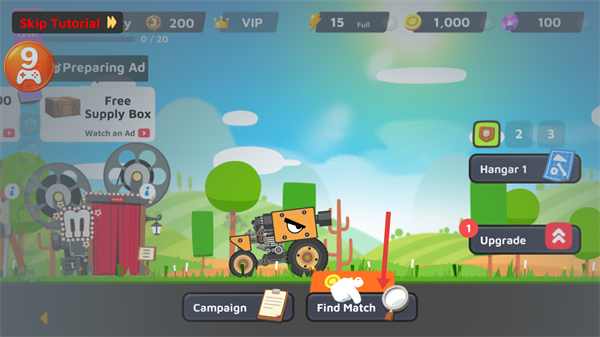 2、點擊FindMatch按鈕,可尋找對戰匹配,進入坦克對戰的戰斗場景的對戰模式。