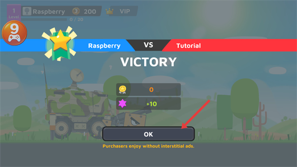 4、對戰勝利后點擊OK按鈕,可確認勝利成果,獲取獎勵并繼續游戲提升坦克實力以應對更難的對戰。