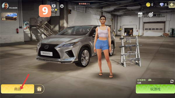 1、點擊商店按鈕進入商城界面,可購買服飾、車輛等物品,之后點擊玩游戲進入對局。