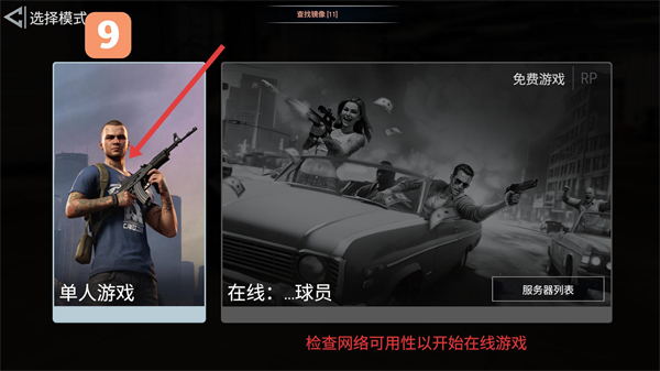 1、在模式選擇界面選單人游戲,進入單機劇情模式,也可選擇在線模式需網絡通暢進行多人游玩。
