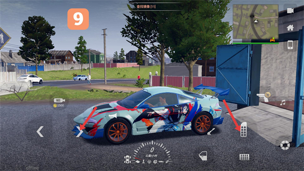 2、在場景中點擊車輛圖標,進入載具駕駛界面,操控裝飾有動漫涂裝的跑車移動,探索地圖區域。