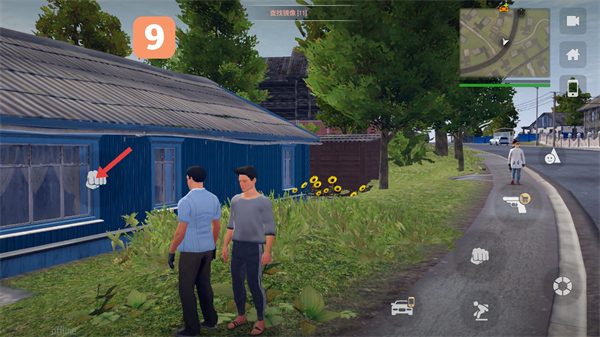 4、與場景中的NPC如藍色房屋旁的角色互動,觸發對話或任務,推進游戲劇情。