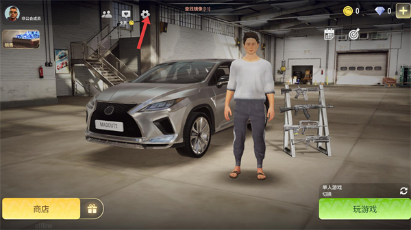 1、點擊界面上方的齒輪圖標進入設置界面,可調整語言、難度、操控靈敏度等參數,適配個人游玩習慣。