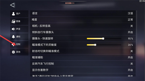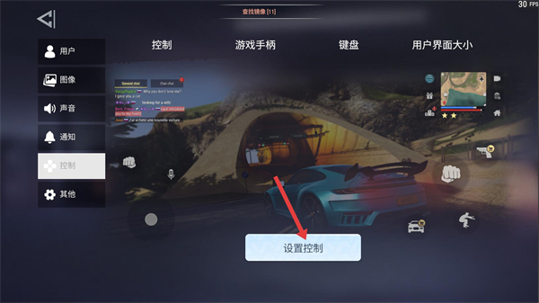 2、進入設置界面,根據箭頭提示點擊控制,進入到控制界面,更改按鍵位置。