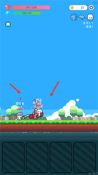3、與劍士等敵人戰斗,注意自身和敵人的傷害數值,合理操控冒險者攻擊,擊敗敵人獲取金幣和經驗,提升戰斗力。