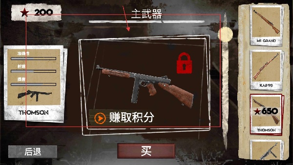 3、Thomson沖鋒槍需要650積分解鎖,射速快,適合近距離壓制敵人,可在積累足夠積分后購買,增強近戰火力。