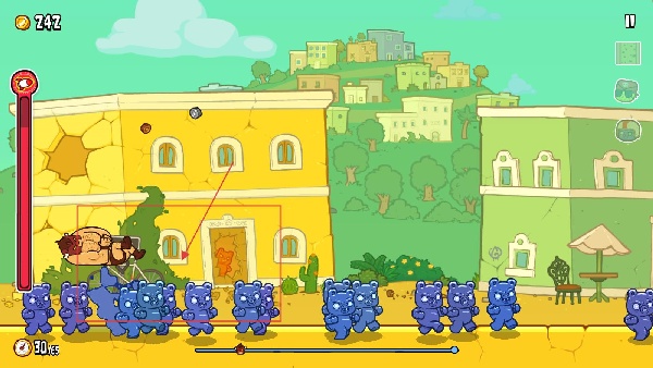 野牛復仇記中文版是一款充滿魔性趣味的物理彈射游戲,采用卡通渲染技術打造色彩繽紛的糖果世界,玩家操控野牛小子通過擂臺彈射開啟復仇之旅,飛行途中碾壓小熊軟糖獲得動力加成,多樣化的道具系統包含火箭推進器與懸浮裝置,警察小熊會設下陷阱阻礙前進,三個可切換角色各自擁有特殊能力,連續彈射機制要求精準把握起跳時機與落地角度。