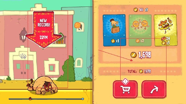1、彈射力度控制系統采用環形指針計量,完美區域觸發強力踢擊動作,撞擊糖果巨人可獲得額外起步動力。
