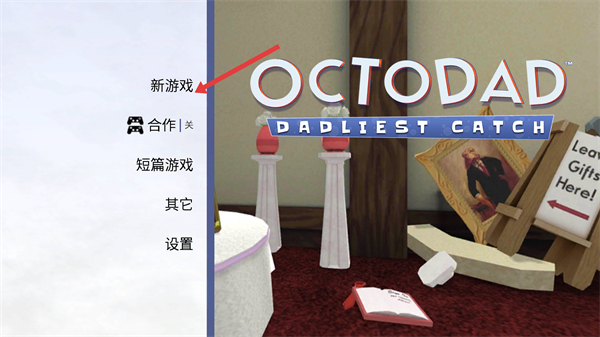 1、在游戲主界面點擊新游戲選項,開啟Octodad:DadliestCatch的冒險之旅,進入游戲的首個任務場景。