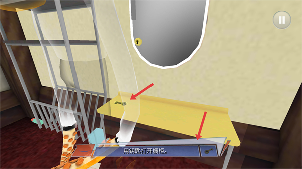 4、找到鑰匙后用鑰匙打開櫥柜,探索櫥柜內的物品,推進游戲任務的進程。