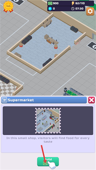 1、點擊Build建造超市,該設施可為旅客提供各類食品,是提升機場服務與收益的配套功能之一。