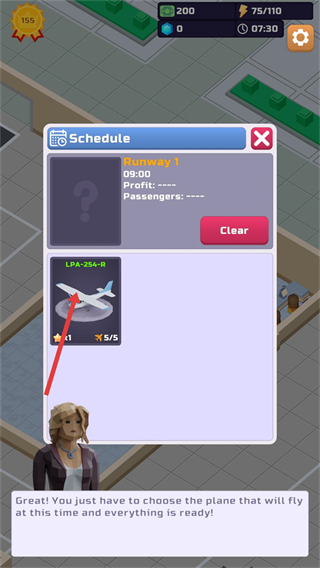4、在航班時刻表界面選擇飛機,安排對應時段的航班,保障機場的旅客運輸流程。