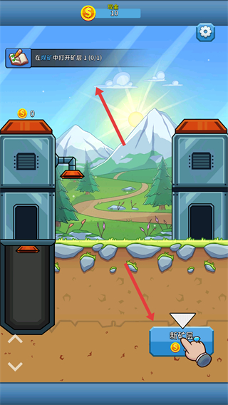 1、游戲開始時,點擊新礦層按鈕,開啟煤礦的礦層1,推進采礦任務,這是開啟采礦運營的第一步。