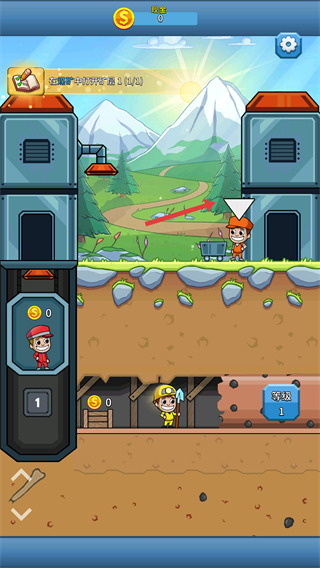 2、礦層1開啟后,礦工開始采礦,需關注礦工的采礦進度,收集開采出的資源,為后續礦層升級和人員招募積累資金。