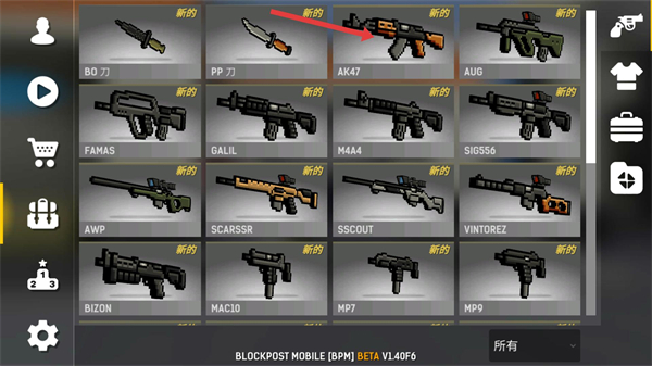 2、在背包界面可選擇各類槍械如AK47、AWP,不同武器對應不同的傷害、射速屬性,需根據戰斗模式選擇適配槍械。