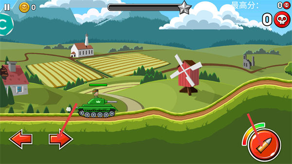 3、戰斗中通過左右箭頭控制坦克移動,點擊子彈按鈕發射攻擊,需躲避敵方火力并瞄準目標,提升戰斗效率。