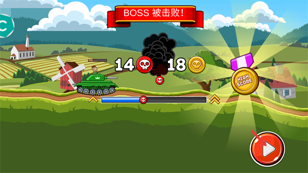4、擊敗BOSS后可獲得資源獎勵,點擊繼續按鈕可推進至下一關,積累資源以解鎖更多關卡和強化坦克。