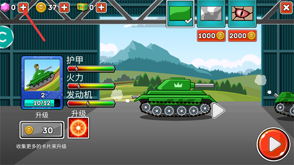 1、在坦克升級界面,點擊鉆石按鈕可進入資源獲取界面,消耗鉆石或金幣可提升坦克的護甲、火力等屬性,增強戰斗能力。