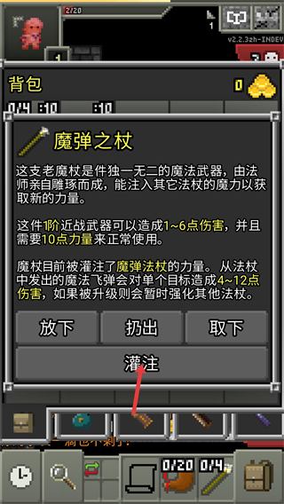 3、對魔彈之杖使用灌注功能,可注入魔法力量強化其傷害能力,提升武器的實戰表現,助力擊敗地牢中的強敵。