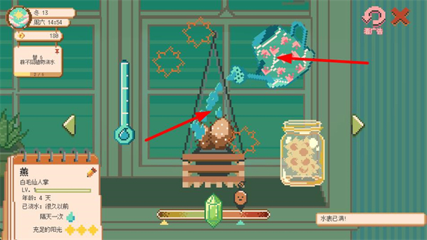 1、點擊窗戶可讓陽光進入,這是植物生長的關鍵步驟,需及時操作,為植物提供充足光照,促進其健康成長。