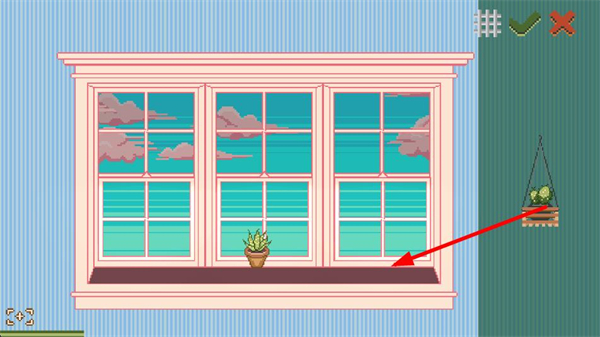 3、在窗臺場景里,選擇合適的位置放置新的綠植,完成植物的布置操作,豐富窗臺的綠植布局。